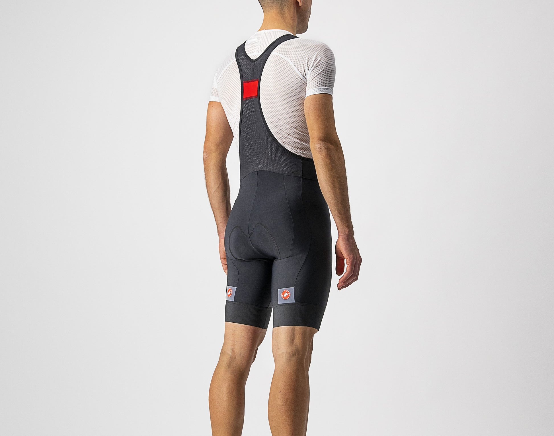 IT JUST WORKS RIGHT Castelli has innovation in our DNA, and we've brought you most innovations in cycling shorts over the years: the first Lycra® shorts on the market, the first synthetic seat pads, the first anatomical seat pads, the first minimalist and flat bib straps, and the first flat leg grippers. All these have become industry standards, and we keep pushing and innovating in our high-end shorts. The Entrata short is where we bring all that knowledge and experience into a short that just plain works. The fabric is just the right weight with just the right stretch and with a matte finish that looks just right. The KISS Air2 seat pad is just right, as is the GIRO3 leg gripper. And the short fits just right because we obsess over the fit of every short we make. We wanted this short to be just right for many years to come, so we stitch on the logos and stitch in the reflective panels on the back. There are no logos to peel off, and everything is stitched down securely. This short gives you every reason to step up to Castelli.