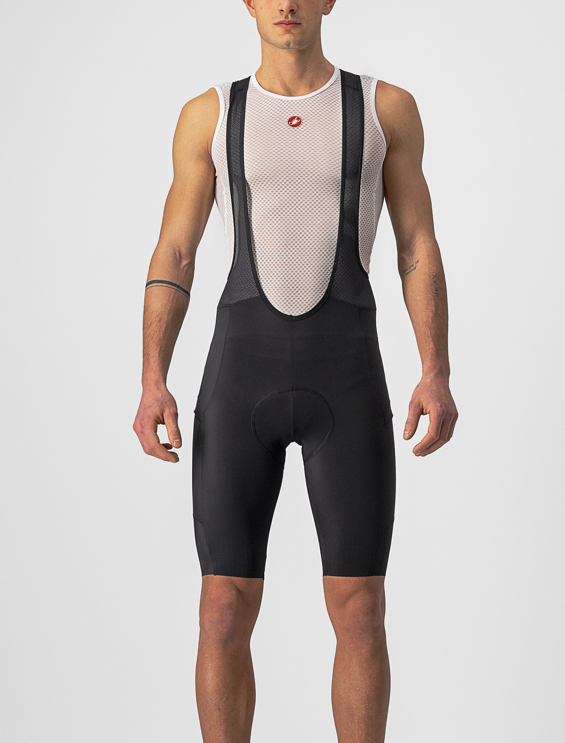 DON'T LIMIT YOURSELF We made this short to meet Castelli's high standards for comfort and performance in a cycling short while adding a few extra features that come in handy for riding on any surface. You'll find our normal exceptional fit as well as the KISS Air2 seat pad, which provides generous anatomically placed padding with an exceptionally soft top layer. What makes this short special is the extremely durable Unlimited Lycra® fabric. It has higher abrasion resistance and tear resistance while not compromising on stretch, moisture management or comfort. |In addition, we use double-layer side panels for the old track rider's trick of fabric-sliding-on-fabric should you fall. This short isn't really meant to be indestructible, but it significantly increases the chances that sliding out on gravel will mean you need to just brush yourself off rather than having to buy a new pair of shorts. That second layer on the side panel also makes for convenient side pockets, with a flap over the top to prevent the contents from falling out. For added convenience while riding on and off road, you have two mesh pockets on the lower back that compress gear next to your body to keep it from bouncing around, This short adds durability and storage without compromising comfort — for unlimited amounts of fun.